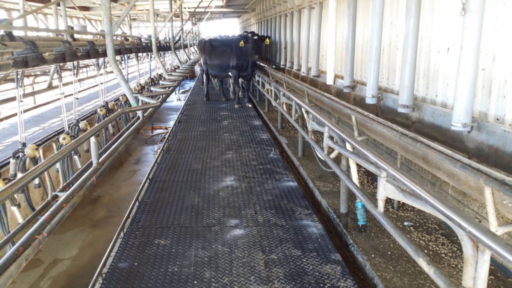 The big change has been with the diminished intensity with the animal’s movement. “Where before it was a regular occurrence we’ve only had one cow go down since the matting was installed,” he said. Feedback from the vet confirmed this – “they noticed how settled the cows were.”