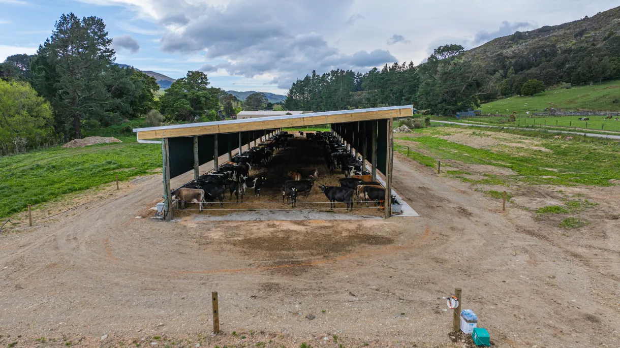 The barn captures all effluent, ditching the need for ponds. It allows them to responsibly increase their cow numbers up to the consented limits, which would not be possible without the shelter due to weather challenges.