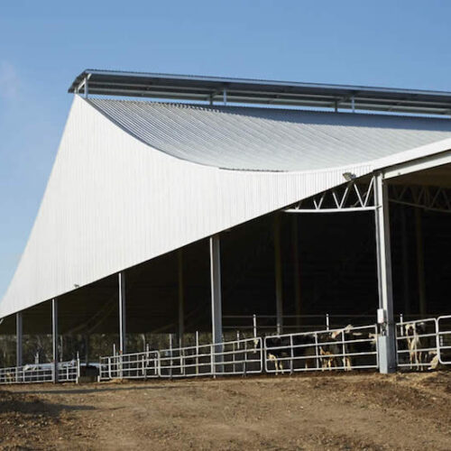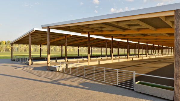 A composting barn is an off-paddock housing solution where cows rest on a composting bed under a covered roof. The barn’s design promotes cow comfort and health by providing a warm, dry, and well-ventilated environment. Composting barns are increasingly popular for their environmental benefits and cow welfare considerations.