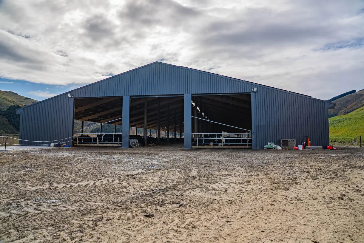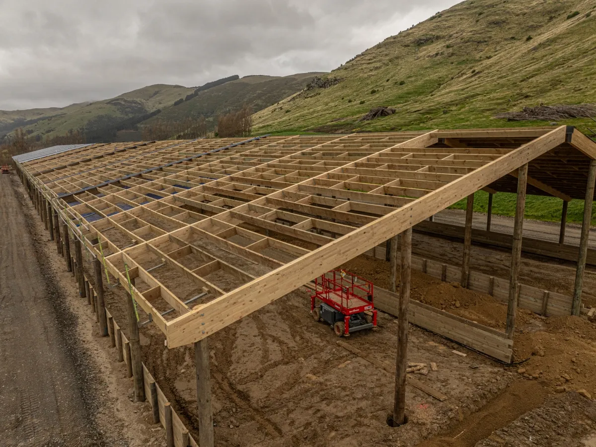 The frame uses NuSpan laminated timber —Prolam— sourced from sustainable NZ plantations. This eco-friendly alternative to steel-framed barns is up to 20% more cost-effective than traditional builds. It handles moisture in effluent-heavy settings without corroding.