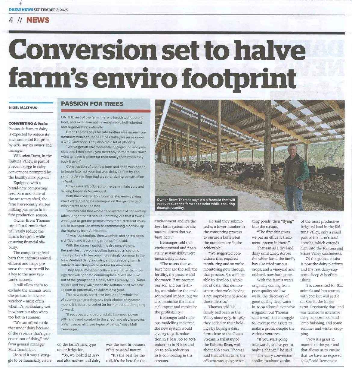 Kaimoo / Willesden’s case fits the pattern. On Banks Peninsula’s wet slopes, the conversion swaps cropping for year-round grass, avoiding exposed soil and boosting fertility. The barn’s 46% footprint cut—via captured effluent and indoor shelter—mirrors sector-wide moves to meet 2030 emissions targets without slashing output. Matt Iremonger’s research echoes broader farmer caution: conversions work when paired with systems that protect assets long-term, turning compliance pressures into straightforward advantages.