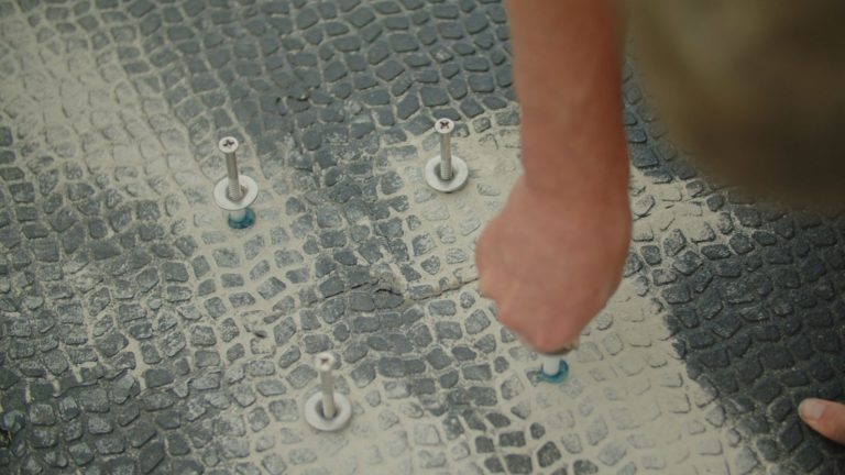Another unique feature of this anchoring system is that once your anchors have been hammered in, you always have the option to take them back out. You have the liberty to remove individual anchors using an impact driver if you ever needed to replace something under the concrete or take that mat out for any reason.