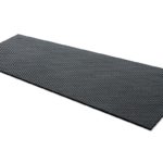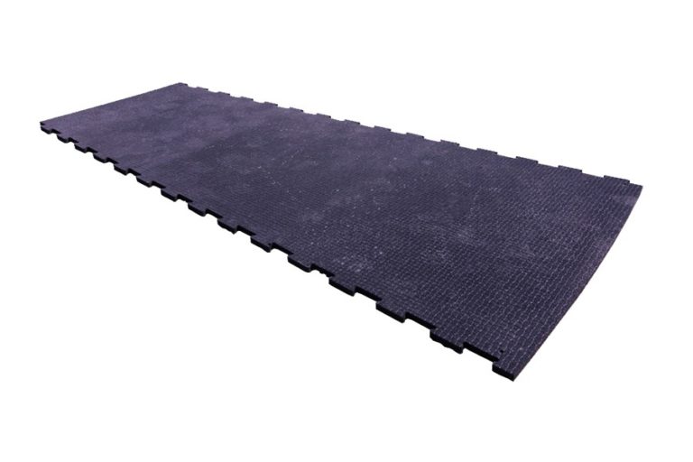Custom-cut, 25mm thick, interlocking mats for rotary milking platforms. Mosaic studded profile with studded base.