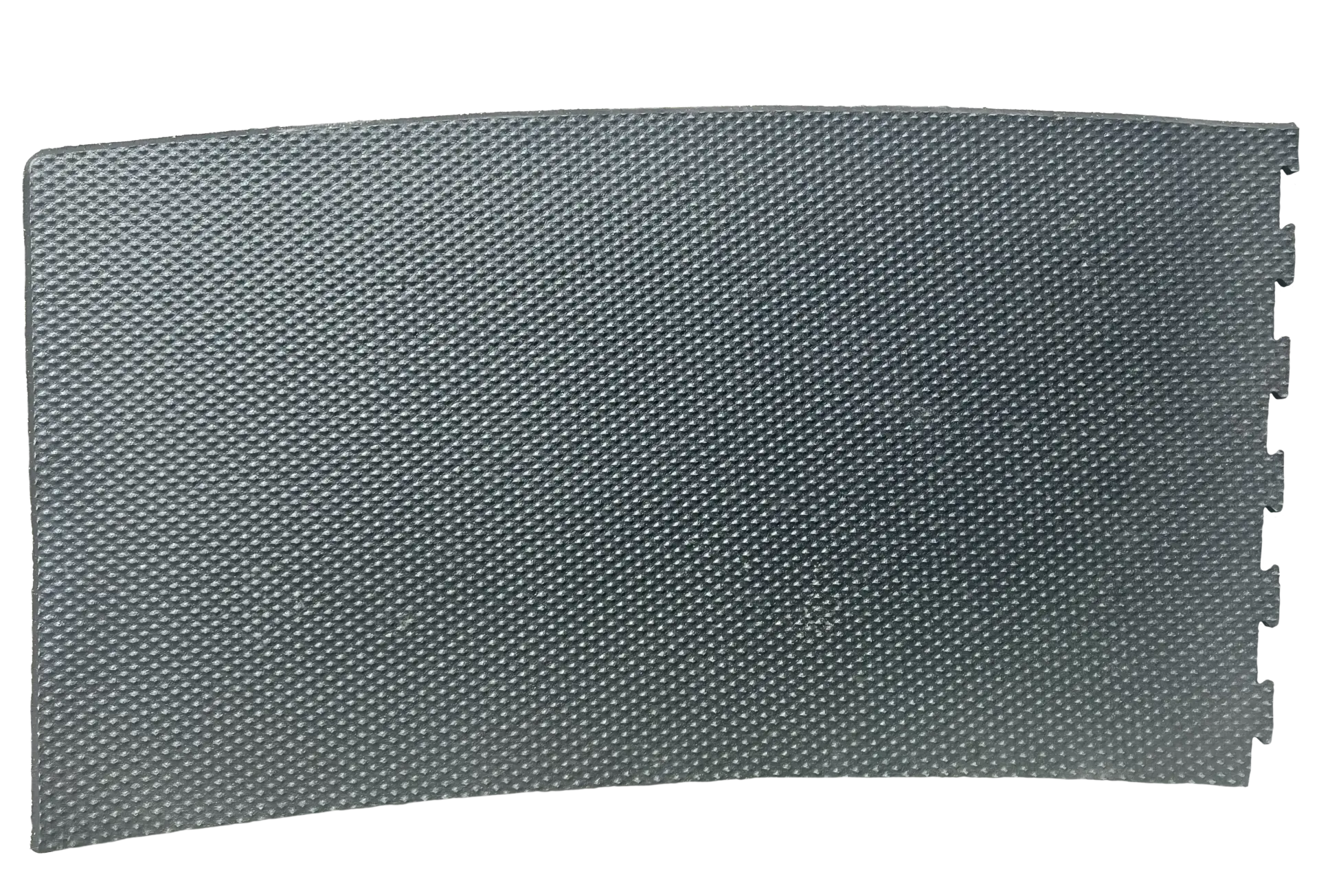 Curved interlocking mats for rotary cups on area. Diamond stud profile, studded base.