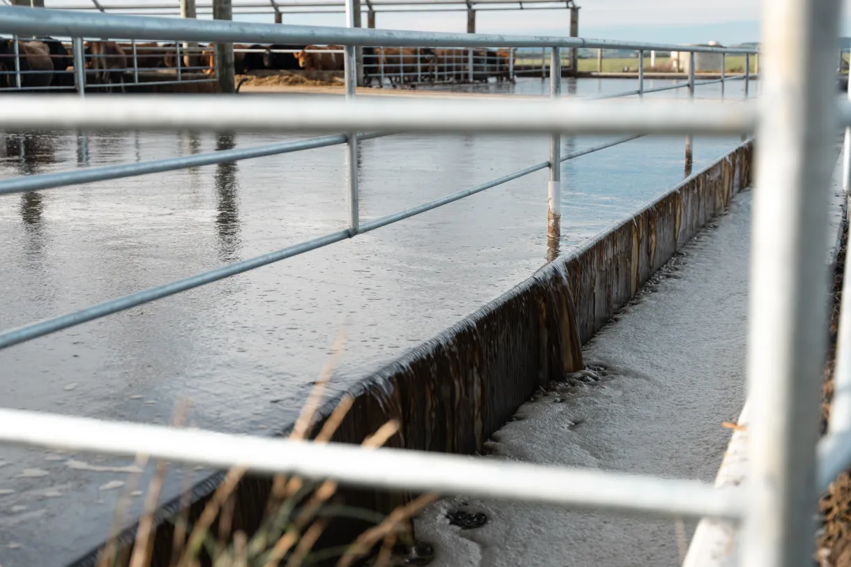 The flood wash system is the game-changer: Water releases from risers every 65mm, creating a cleaning wave across the 1.7% sloped barns. The greenwash flows to the sump, passes through a weeping wall to separate solids, then gets pumped back for reuse—reducing nitrogen leaching and working seamlessly with existing ponds. This flood washing setup integrates seamlessly with dairy rubber matting, making it simple and low-effort.